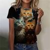 Kawaii Cat 3D-bedrucktes Damen-T-Shirt, kurzärmliges Oberteil mit Rundhalsausschnitt, lässige, einfache Sommerkleidung für draußen