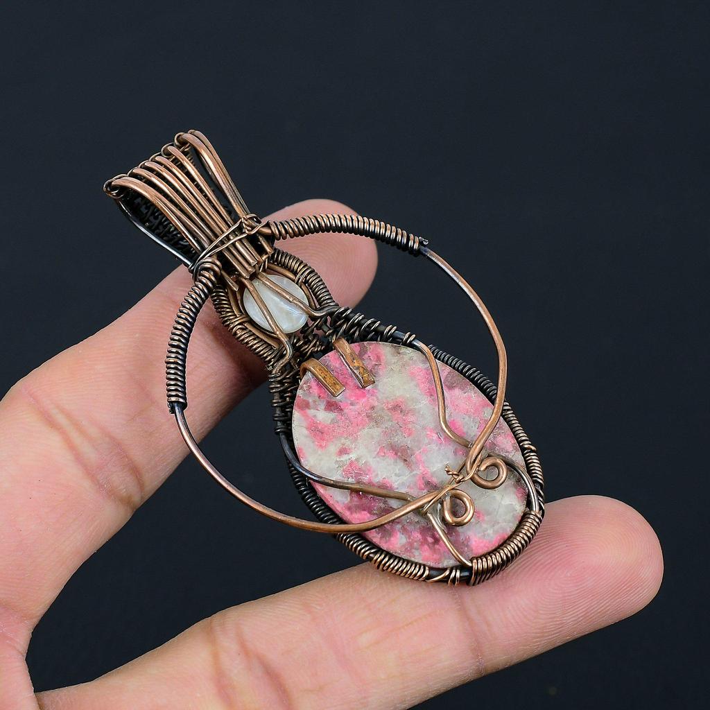 Rosa Thulit & Mondstein Edelstein Handgefertigter Kupferdraht Wickel Schmuck Anhänger für Frauen