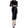 Damenanzug bestehend aus einem Kapuzenpullover mit Kapuze und einem gerade geschnittenen Rock mit Schlitz hinten, hergestellt aus natürlichen Materialien.