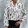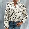 QICED Frühling Herbst Leopard Print Mode Polyester Pullover Langarm V-Ausschnitt Lose Typ Damen Shirt