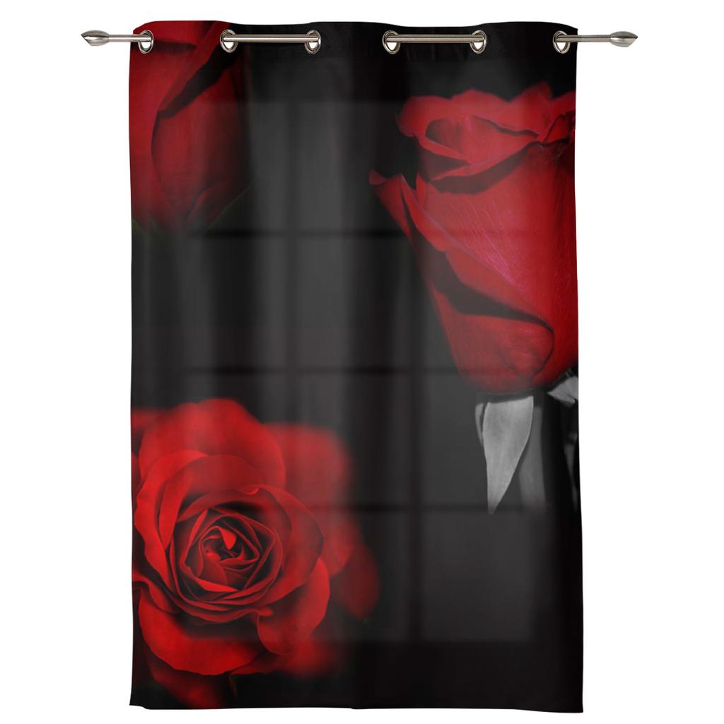 Rote Rose Blume Schwarze Luxusvorhänge für Wohnzimmer Fensterdekoration Vorhang für Schlafzimmer Heimdeko