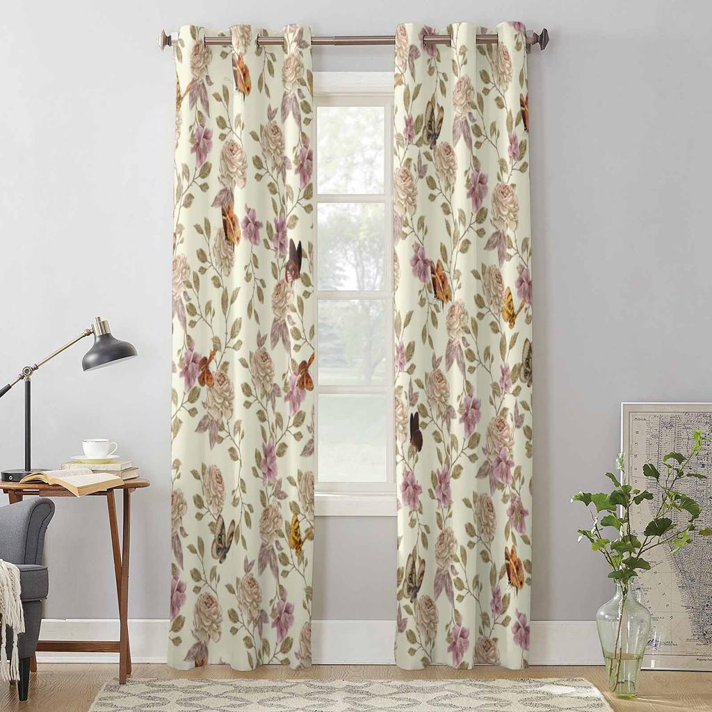 Blumen Blätter Schmetterling Retro Fenster Vorhänge für Wohnzimmer Luxus Schlafzimmer Vorhang Küche Jalousien Vorhänge Vorhänge