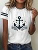 T-Shirt im neuen Stil für Frauen mit Anker-Print, Sommer-Übergröße, T-Shirts für Damenbekleidung, O-Ausschnitt, Damenmode, Übergröße
