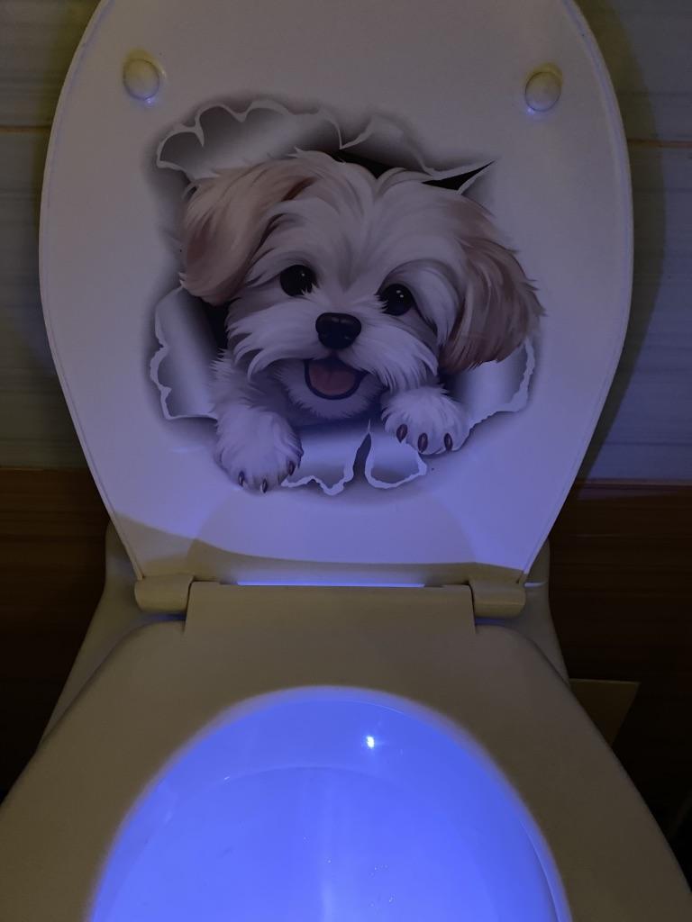 Der Aufkleber ist süß und cartoonartig, gefällt mir, die Toilette ist fröhlicher geworden.
