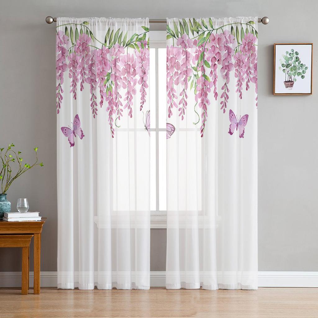 Frühling Aquarell Rosa Glyzinien Blumen Schlafzimmer Vorhänge Tüll Sheer Vorhang Wohnzimmer Home Decor Voile Vorhänge