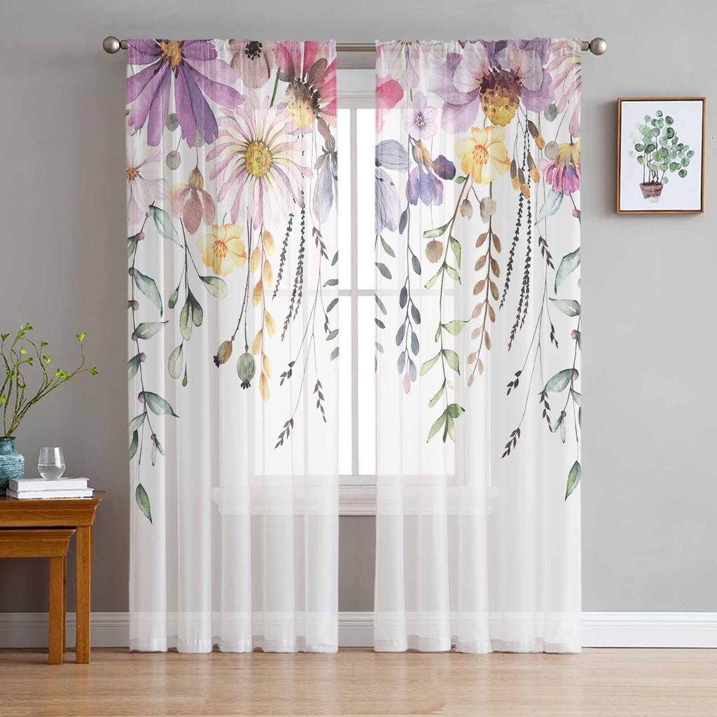 Pflanzen, Wildblumen, Blätter, Sommer, pastorale Brise, Fenster, Tüllvorhänge für Wohnzimmer, Hotel, Luxus-Dekoration, transparente Vorhänge