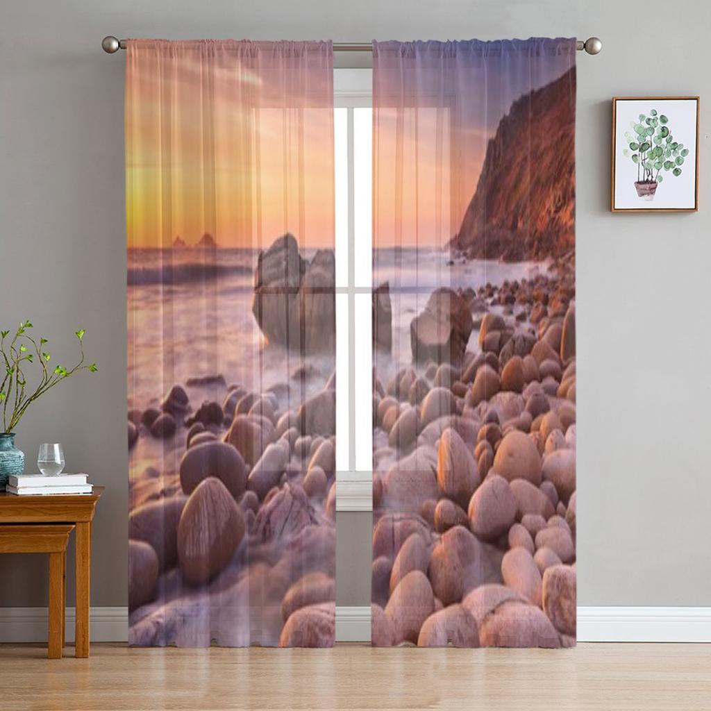 Felsiger Strand von Porth Nanven in Cornwall England bei Sonnenuntergang Chiffon Transparente Vorhänge Wohnzimmer Schlafzimmer Fenster Voiles Tüllvorhang