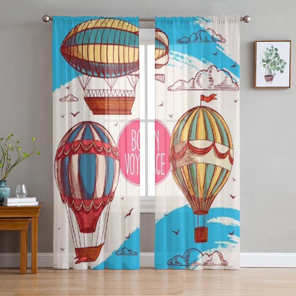 Vintage Bunte Luftballons Fliegen Am Himmel Wolken Vögel Chiffon Transparente Vorhänge Wohnzimmer Schlafzimmer Fenster Voiles Tüllvorhang