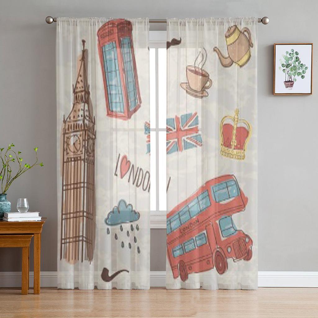 Bunte Londoner Symbole Transparente Vorhänge für Wohnzimmer Durchsichtiger Tüll Fenstergardine Schlafzimmer Küche Heimdeko Schleier Drapierungen