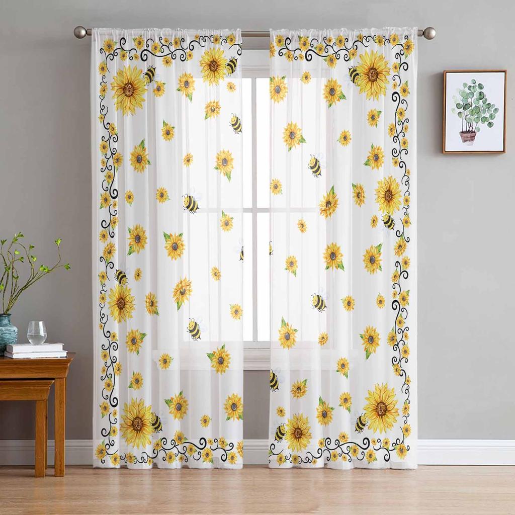 Sommer Aquarell Blume Sonnenblume Bienenfarm Fenster Tüll Vorhänge für Wohnzimmer Schlafzimmer Hotel Luxus Dekoration Sheer Vorhänge