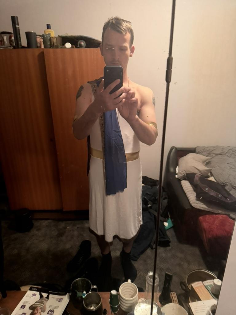 Antike griechische Toga für Herren mit Ärmeln, eine Schulter, bestickter Rand, ärmellose Robe, Halloween, Cosplay, Vintage-Thema, Showkostüm