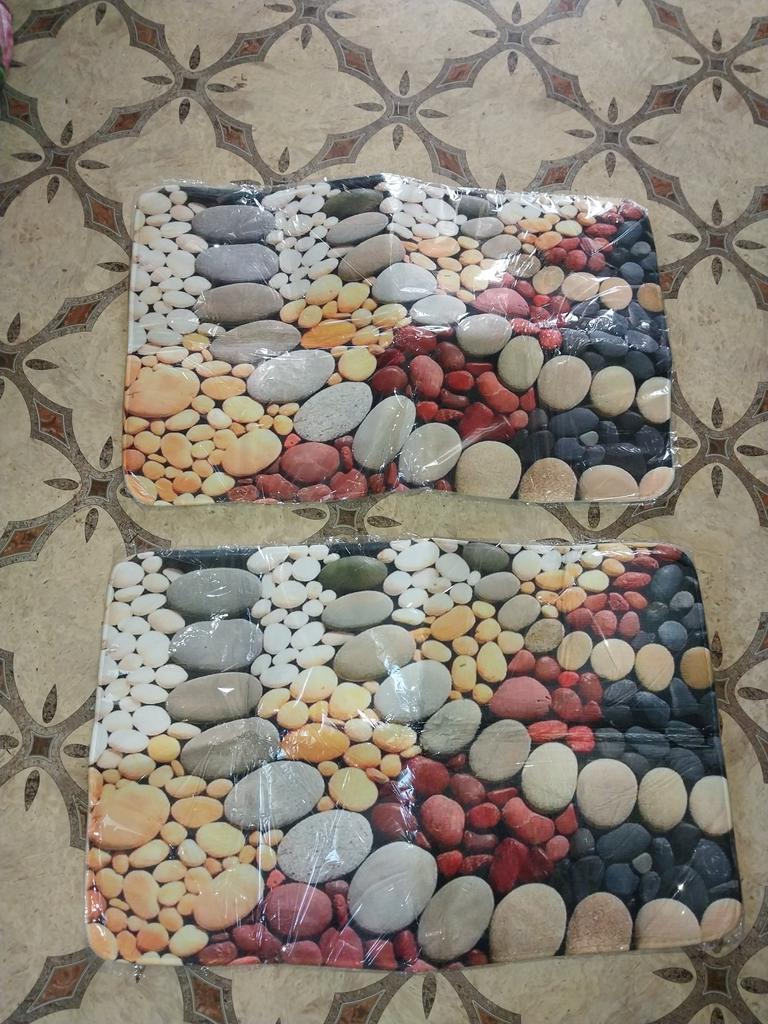 Gute Matten, farbenfroh. Sie sind etwas zerknittert, aber ich denke, sie werden sich wieder normalisieren, glätten. Sehr weich.