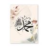 Islamic Arabic Calligraphy Canvas Painting, Allah Beige Leaf Flower Poster, Muslim Wall Art, Print Picture, Living Room Decor