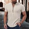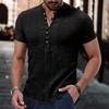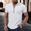 Kurzärmeliges T-Shirt für Herren mit V-Ausschnitt und Knopfleiste, Baumwoll-Leinen-Hemd, Freizeitkleidung für Herren, beliebte Oberteile für Männer