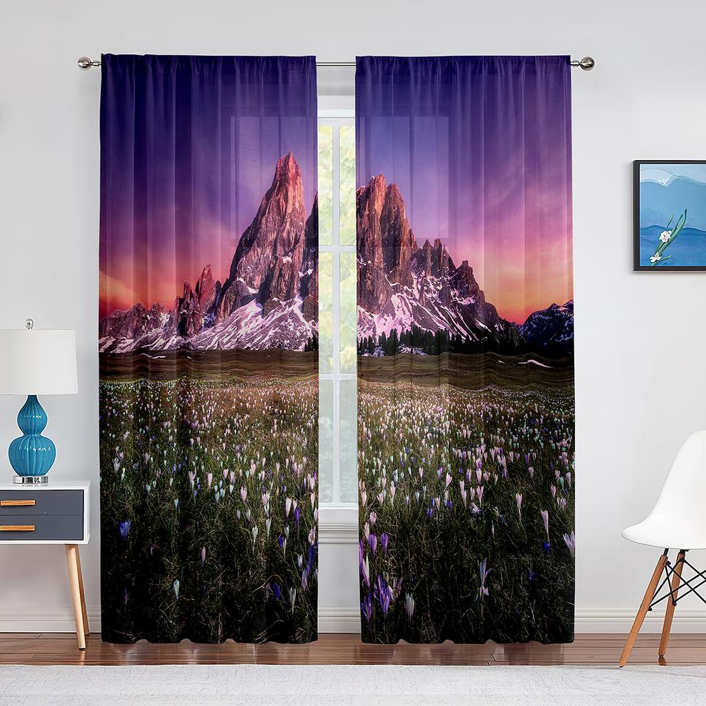 Gras Blumenfeld Berglandschaft Natur Tüll Vorhänge für Wohnzimmer Chiffon Transparent Voile Küche Schlafzimmer Vorhang Drapierungen