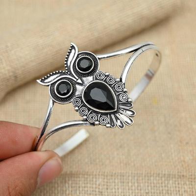 Armband aus 925er Silber mit blauem Topas-Edelstein, handgefertigtes Eulen-Design, bezaubernde Manschette für Frauen
