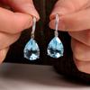Eleganter Silberohrring mit baumelndem Verschluss für Frauen und Mädchen, natürliche, riesige Birnenform, himmelblauer Topas, feiner Schmuck, Partys, Geburtstagsgeschenk