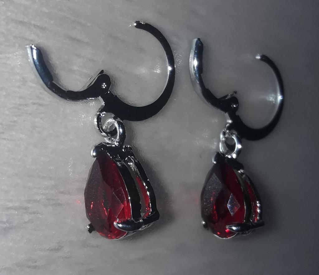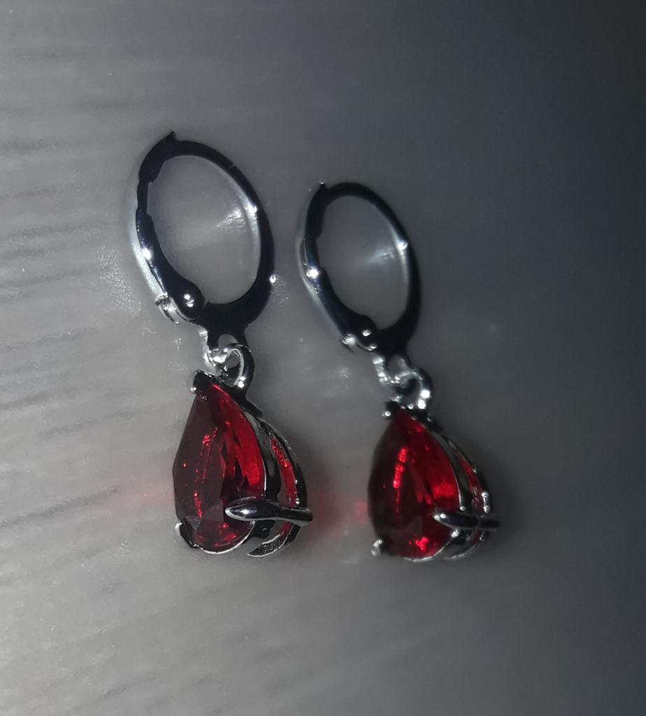 Ein Paar silberne Ohrringe mit einem roten Stein (Amethyst?). Fein gearbeitete Ohrringe, größengetreu.