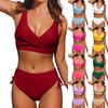 Badeanzug mit geteiltem Bikini, einfarbig, überkreuzt, hohe Taille, mit Trägern, sexy Badeanzug