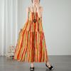 Übergröße Neckholderkleid Urlaub Rustikal Bedrucktes Baumwollleinenkleid Locker Großer Saum Damenkleider