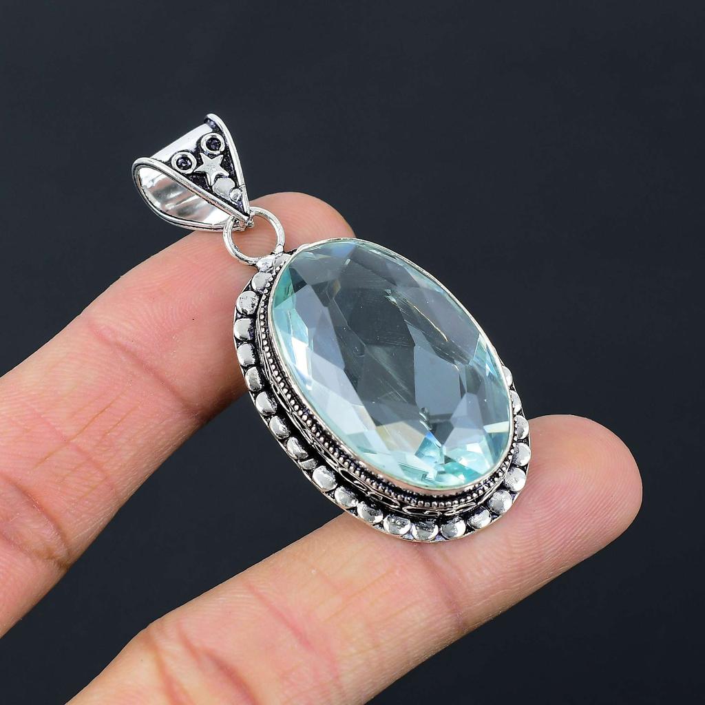 Blauer Topas Edelstein Anhänger Massiv 925 Sterling Silber Anhänger Schmuck Geschenk für Unisex LG-002