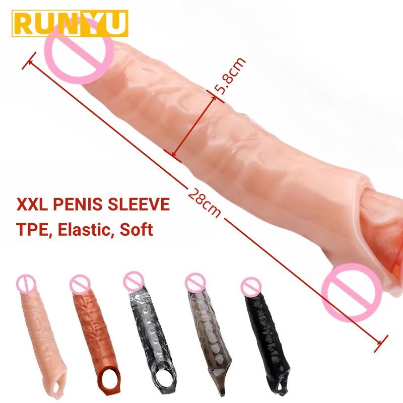 - Dies ist eine verlängerte, auffällige und übergroße Penishülle, die an der Unterseite der Hoden befestigt werden kann.