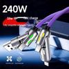 Vorstellung des Datenkabels mit LED-Leistungs-Digitalanzeige, das Echtzeit-Sichtbarkeit des Ladestatus und der Leistung bietet.. Dieses vielseitige Kabel unterstützt 4 Lademodi: USB A auf USB C, USB A auf 8Pin, USB C auf 8Pin und USB C auf USB C Ladegerät-Block-Adapter.