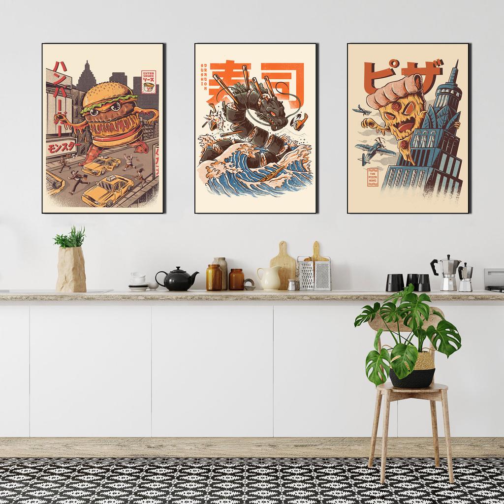 Japanisches Essen Nudeln Cartoon Malerei Druck Wandkunst Leinwand Poster Abstraktes Bild für Küche Esszimmer Heimdeko Cuadros