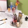 Transparente Make-up-Box mit drei Gittern, Make-up-Pinsel-Eimer, Kosmetik-Organizer, Aufbewahrungsbox für den Schreibtisch des Schülers, Stiftebehälter