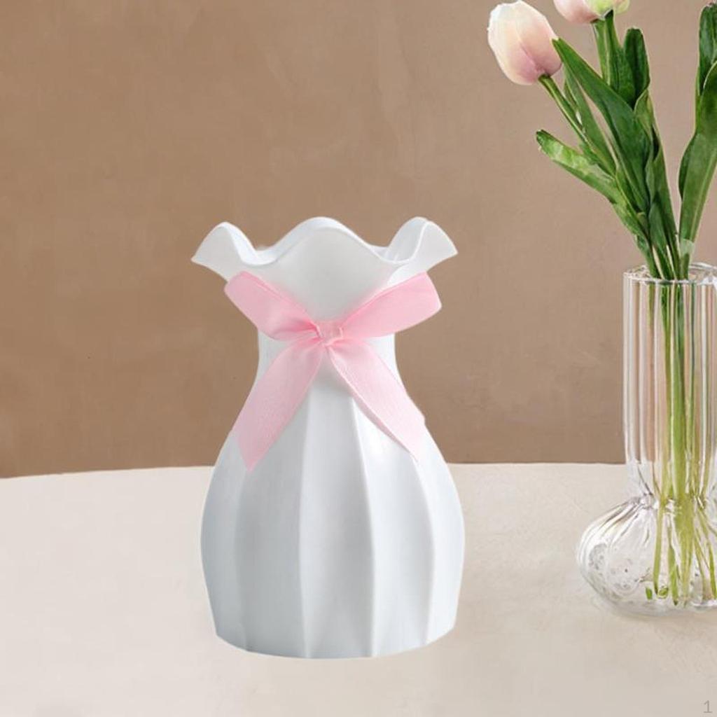 - 【Premium Material】: Die moderne Blumenvase mit Lotusblatt-Mund ist aus Kunststoff, in geometrischer Kunstform, mit Schleifendekor, schlicht und modisch und zeigt Noblesse.. Feine Textur und robust.