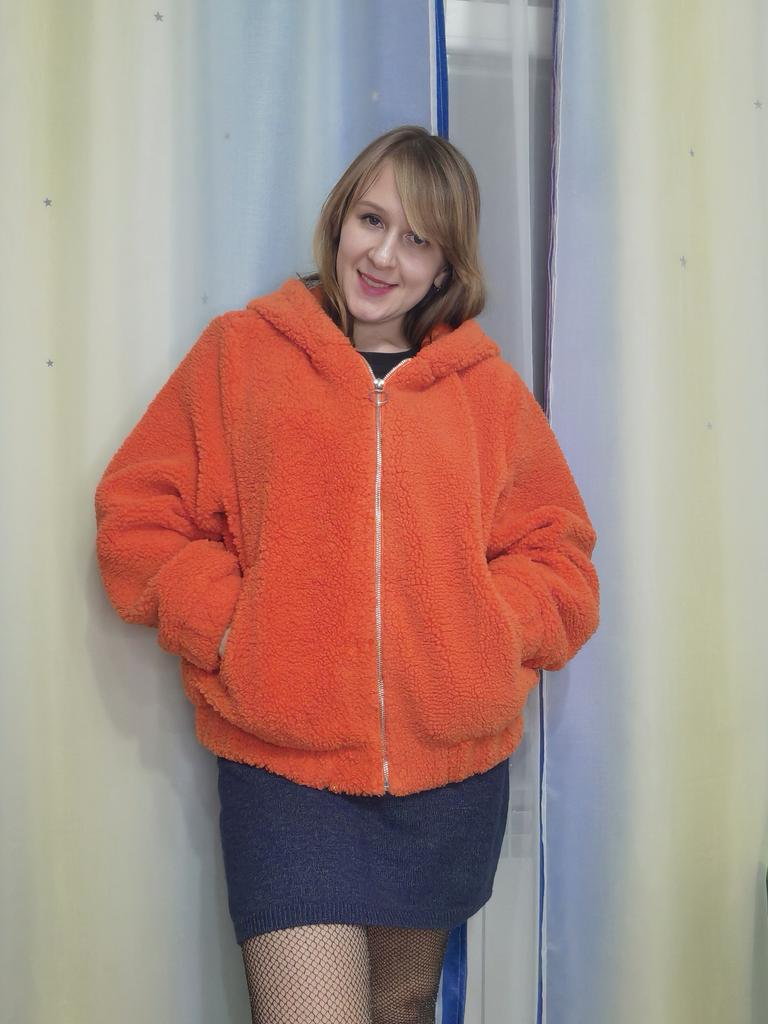 Kurz geschnittene Damenjacke Sieht anständig aus, jugendlich Die Farbe ist ausreichend gesättigt, leuchtend. Synthetikfutter, Taschen. Metallreißverschluss, stark. Für Größe 46 habe ich Größe XL genommen. Die Größe hat perfekt gepasst. Gute Jacke für Herbst-warmen Winter. Warm genug bis Minustemperaturen. Zur Auswahl stehen Modelle in verschiedenen Farben und Größen, mit und ohne Kapuze.