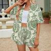 YYFS Damenmode Sommer Frühling Casual Blumenmuster Druck Kurzarm Blusen & Hemden Hohe Taille Shorts Anzüge