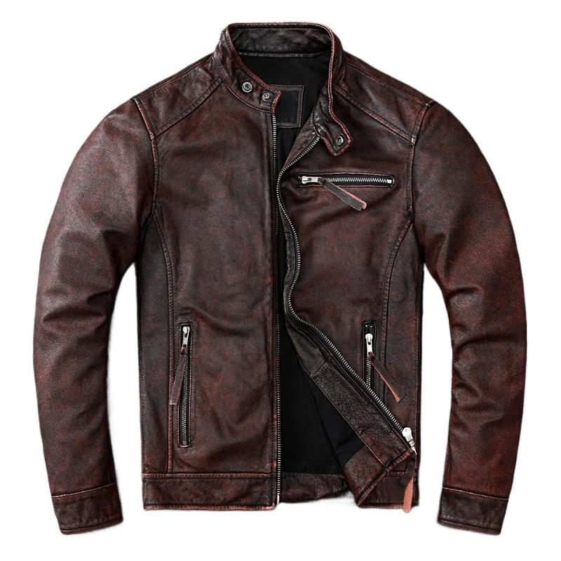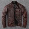Chinesische Größe Vintage braun Mantel klassische Biker Stil kurze schlanke echte Lederjacke Männer Casual Ledermantel Herbst