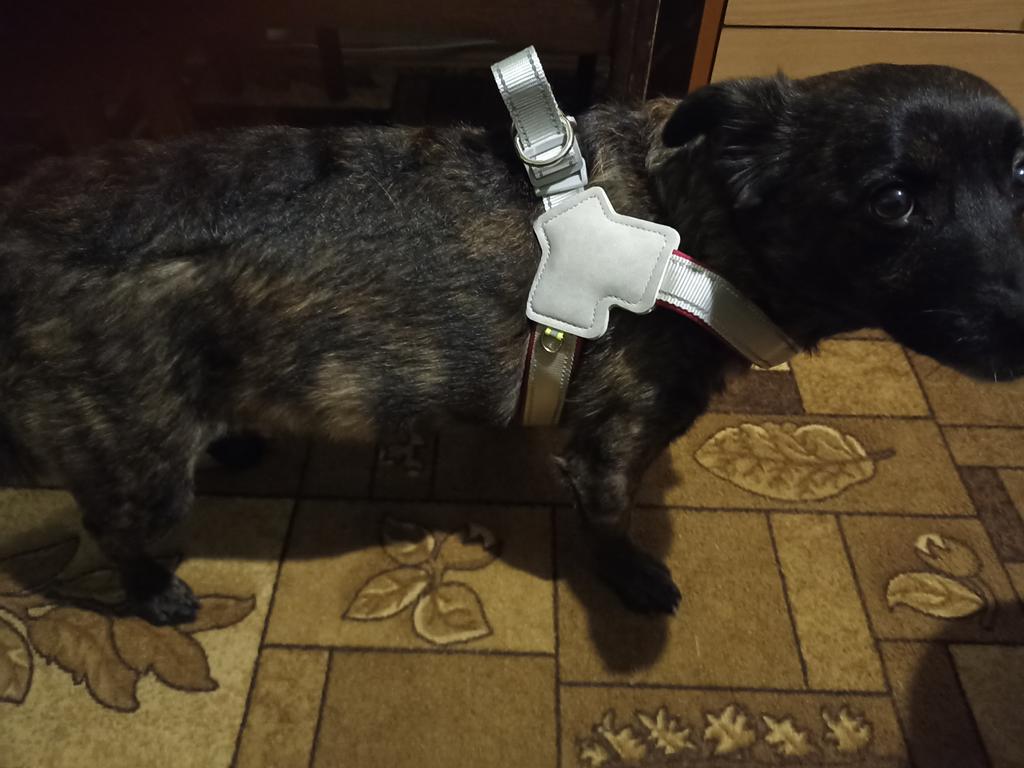 Unbequemes Geschirr, und die Größe ist auch zu groß. Der Hund ist etwas schockiert.