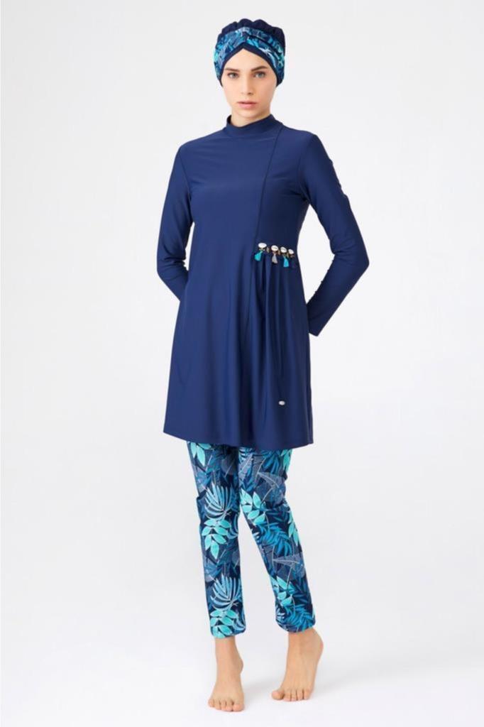 4256 Badeanzug im dunkelmarineblauen Design. Unser Lycra-Hijab-Badeanzug wird speziell aus importiertem Badeanzugstoff aus Polyamid hergestellt.