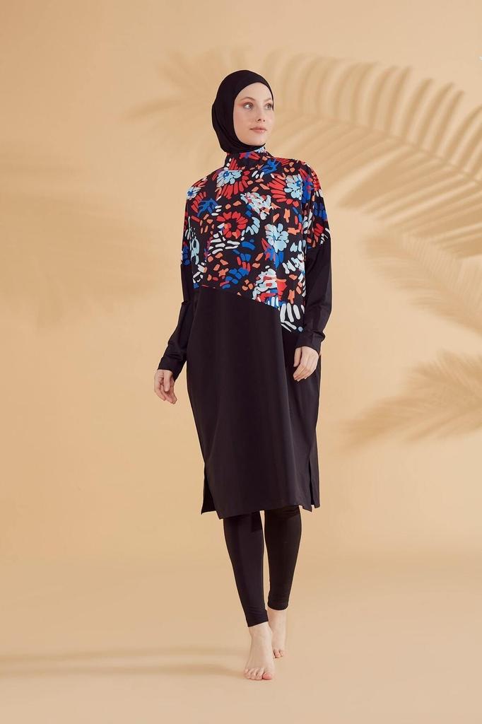 Black Fully Covered Hijab Swimsuit with Parachute Flowers Black Fully Covered Hijab Swimsuit with Parachute Flowers M2313 Since the product has a water-repellent finish, it dries quickly when you get out of the water and does not stick to you.