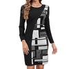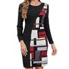 2024 Damen Frühlingskleid Farbblock Geometrischer Patchwork Rundhals Langarm Lockerer Pullover Weich Über Knie Länge Lässig Alltag Mini Kleid