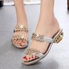 Glitzernde Kristall-Slipper Damen Luxus Strass Mittelhohe Absätze Sandalen Frau Böhmisch Gold Seltsamer Absatz Flip-Flops Sommerschuhe