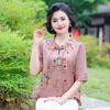Damen-Hemden, bestickt, Stehkragen, Knopfleiste, Blusen im Ethno-Stil, Frühling/Sommer, Vintage-Shirt, Tops