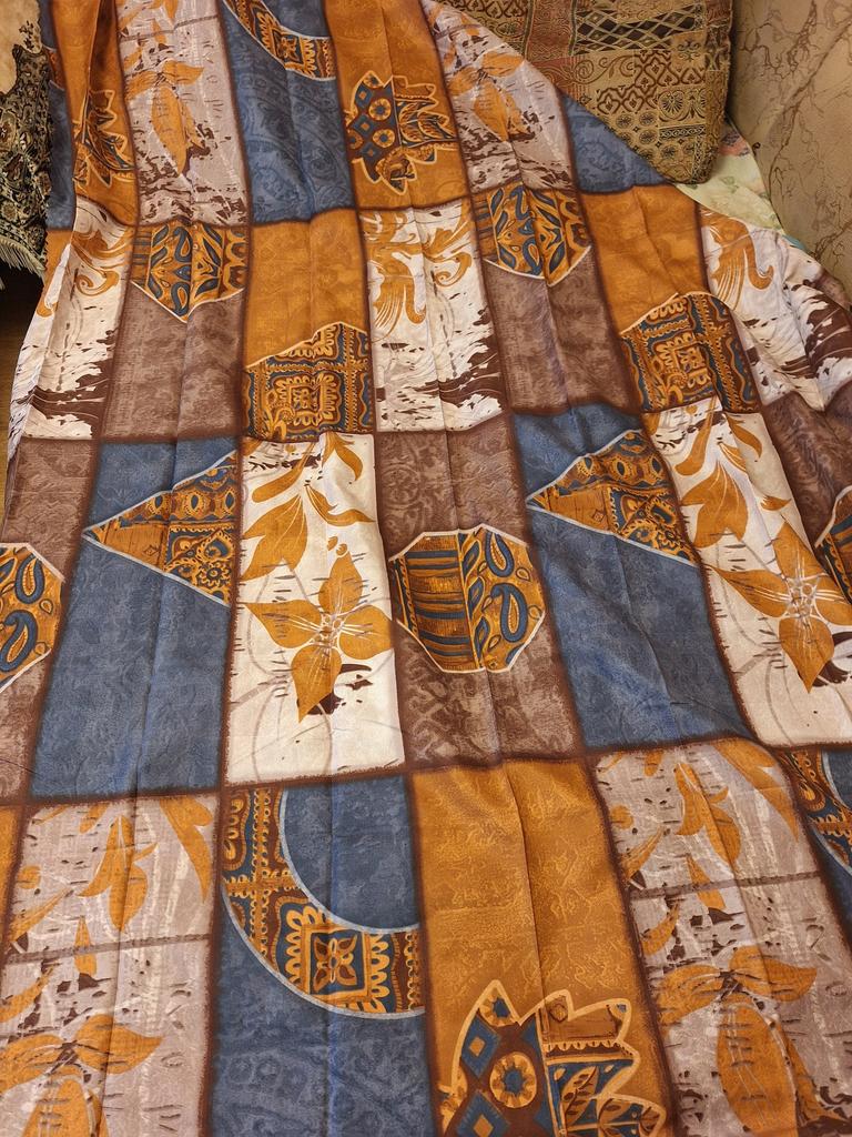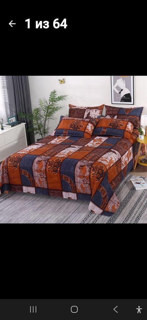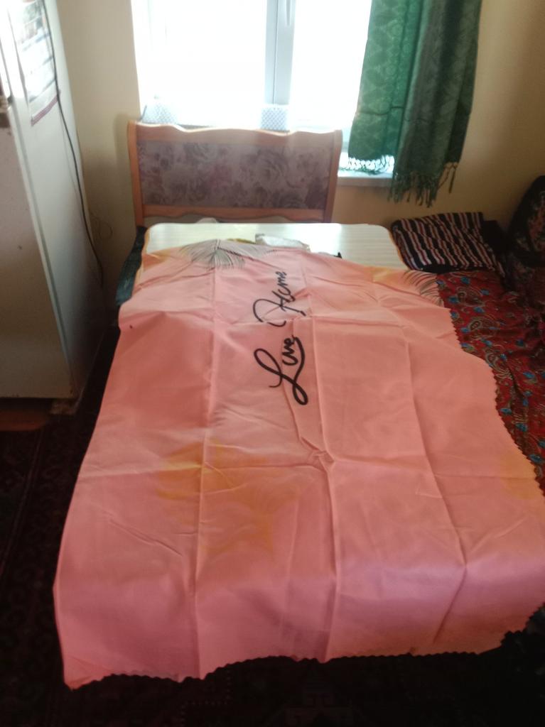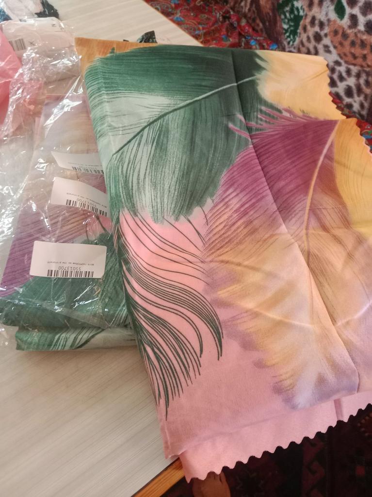 Ich habe ein Bettlaken und zwei Kissenbezüge genommen. Sie sehen schön aus. Keine Baumwolle. Vielleicht ist sie vorhanden, aber nicht in großer Menge.