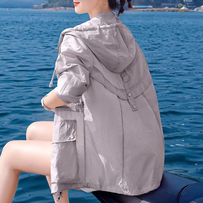 Damen Outdoor Sport Dünne Jacke Sonnenschutz Kapuze Freizeitjacke Taillen Kurze Büro Strickjacke