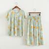 Baumwollseidenset Kurzarm-Caprihose für Damen mittleren Alters und ältere Frauen im Sommer, dünnes Oberteil, cooles Zuhause