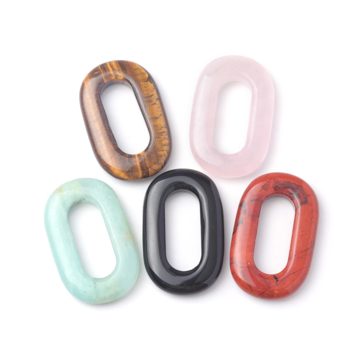 1 Stück Naturstein-Anhänger, hohl, oval, Quarz, Amazonit, Amethyst, Edelsteine, Charms für die Schmuckherstellung, DIY, Frauen, Männer, Halskette, Ohrringe, Zubehör, 23 × 38 mm