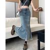 Modischer Jeansrock mit ausgefranstem Saum und hoher Taille