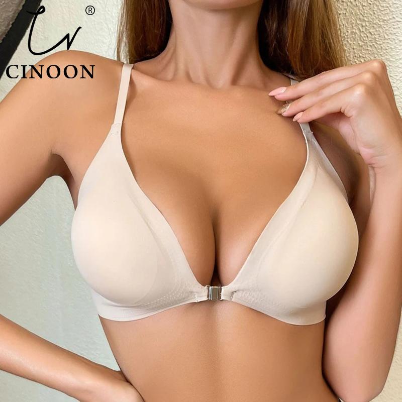 CINOON Sexy No Trace BHs für Frauen Push-Up Unterwäsche Schlaf Abnehmbare gepolsterte Bralette Einteiliger Büstenhalter Frontverschluss Intim
