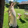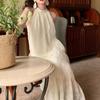 Vintage Ärmellose Neckholder Midikleider für Damen Spitze Sexy Off Shoulder Loose French Langes Kleid Frühling Sommer 2024 Apricot