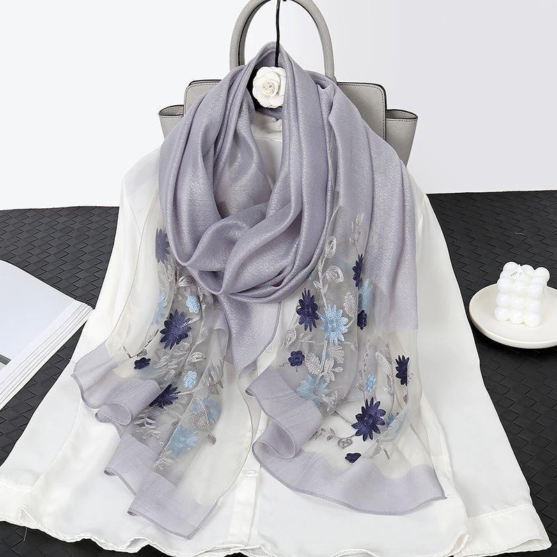 Eleganter Schal aus Seidenmischung mit Blumenstickereien – Atmungsaktives, sonnenschützendes und vielseitiges Tuch für stilvolle Wärme