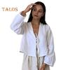 Verleihen Sie Ihrer Garderobe einen Hauch von lässiger Eleganz mit diesem stilvollen Damenhemd. Diese langärmelige Strickjacke mit modischem Schnürverschluss verleiht einen Hauch von Verführung. Sie hat eine lockere Passform und einen Bindeverschluss auf der Brust..