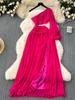 Senior Schulterfreies Party Sexy Kleider Diagonaler Kragen Ausgeschnitten Langes Ballkleid Schlitzdesign Locker Mode Urlaub Schicke Kleidung