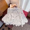 Damen-Oberteil mit 3/4-Ärmeln, Spitze, hohler Haken, Blumenmuster